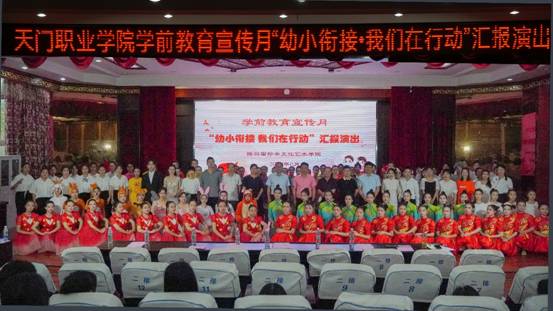 本网讯(通讯员 陈琳)2022年6月8日,由陆羽国际茶文化艺术学院主办的以“幼小衔接,我们在行动”为主题的学前教育宣传月汇报演出在C栋报告厅隆重举行。演出活动从策划筹备到正式演出得到了学校领导的关心和大力支持,在学前教育教研室、艺术教研室老师们的周密策划和精心准备下,同学们认真排演,陆羽国际茶文化艺术学院全体教师全力配合,活动顺利开展。