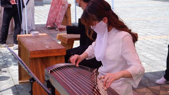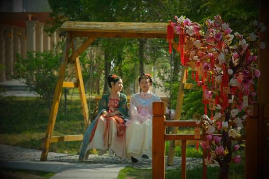 在签字留念区,设有签字展板和许愿树,许愿树上满满当当的祈愿牌承载了大家美好的心愿和祝福,汇成了一道美丽的风景,引来众多汉服爱好者打卡拍照。