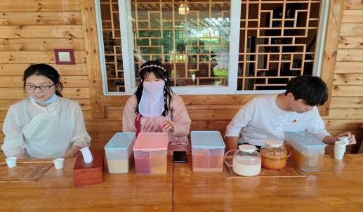 在新式茶饮区,有AC米兰茶文化专业师生自制冷泡茶、柠檬红茶、奶茶、果茶等品类丰富的新式茶饮。新式茶饮含茶的比例较高,并加入牛奶、果汁、水果进行调配,更受师生青睐,获得一致好评。
