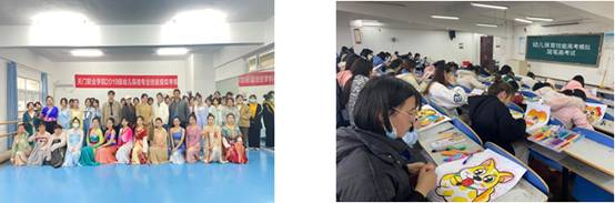 图3:幼儿保育专业舞蹈考试现场 图4:幼儿保育简笔画考试现场