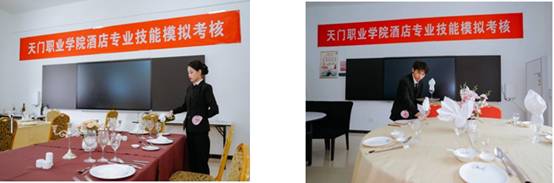 图1:酒店专业西餐摆台考试现场图2:酒店专业中餐摆台考试现场