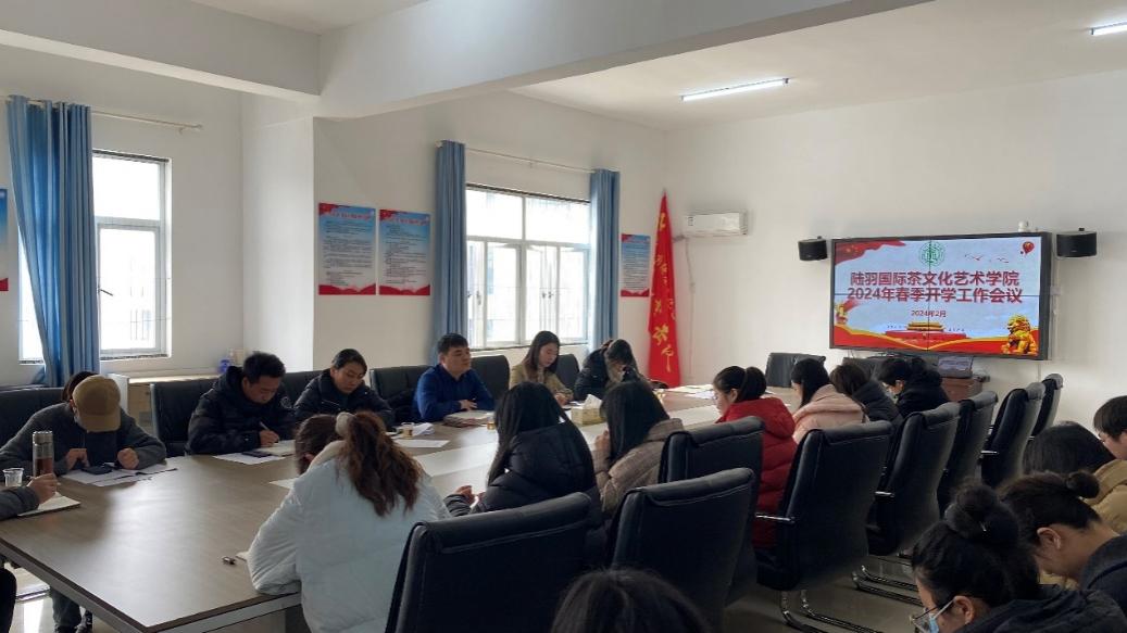 2月29日,陆羽国际茶文化艺术学院召开2024年春季开学工作会,深入学习贯彻习近平新时代中国特色社会主义思想,认真落实学校工作部署,着力打造具有本地特色综合性艺术学院。校党委委员、副校长阳军,学院党支部书记曾娟、副院长彭晓雪出席会议。学院全体教师参加会议。学院院长温莎主持会议。