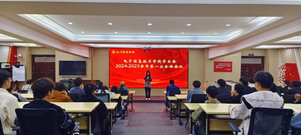 10月24日下午,电子信息技术学院学生会于马克思主义学院学术报告厅举行了2024-2025学年第一次全体会议。学院团总支书记钟雨出席会议并讲话,学生会全体成员参加会议,会议由学生会组织部部长柳洋主持。