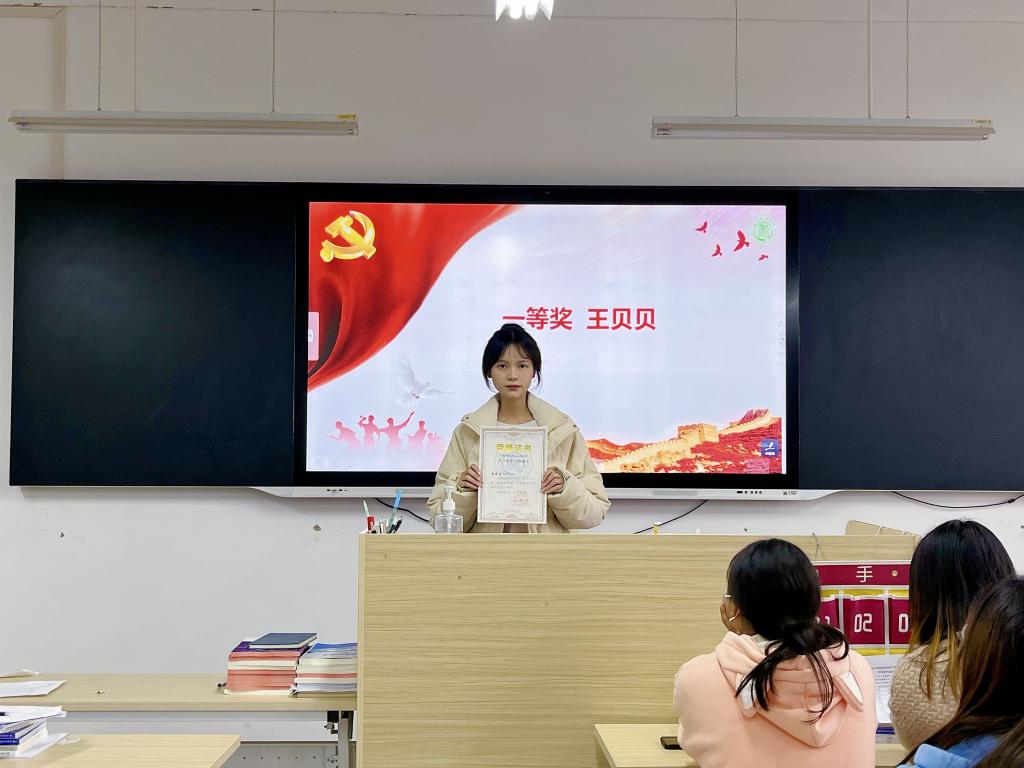 仪式在“学习二十大 奋进新征程”获奖作品展视频展示中拉开序幕。程欣宣读了《关于公布电子信息技术学院“学习二十大 奋进新征程”手抄报评比结果的通知》,公布了获奖学生名单。随后,王肖为获奖学生颁发了证书。
