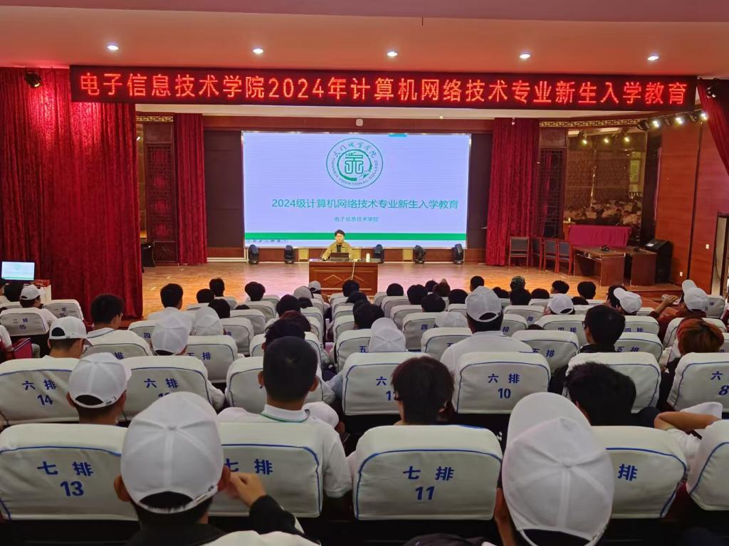 为了让电子信息技术学院2024级新生更好地了解所学专业,明确学习目标和未来发展方向,激发学生对未来职业道路的兴趣和热情,电子信息技术学院于10月14日至10月21日举办了新生入学教育活动,特别邀请了五位不同专业领域的教师,对计算机网络技术、软件技术、大数据技术、人工智能技术应用、应用电子技术五个专业进行了入学教育。