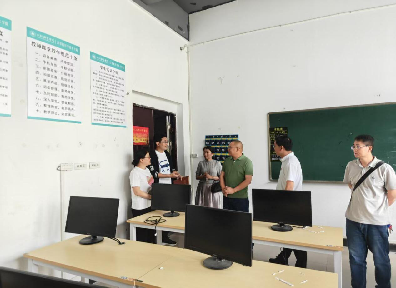 闵锐表示,本次交流的主要目的是学习经验,进一步提升学院专业建设水平、人才培养质量,加强两院之间的合作交流。随后,闵锐一行对仙桃职业学院计算机科学技术学院数字产业学院、数字孪生实践中心、大学生创新创业孵化基地进行了实地考察。