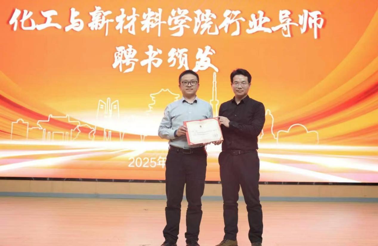 随后,鲁碧舫书记代表学院,正式聘请陈赟总经理与谭振董事长为化工与新材料学院“行业导师”,并颁发了聘书。这一举措标志着学院在推动校企协同育人方面迈出了坚实的一步,将为学生们带来更多来自产业一线的宝贵知识与经验。