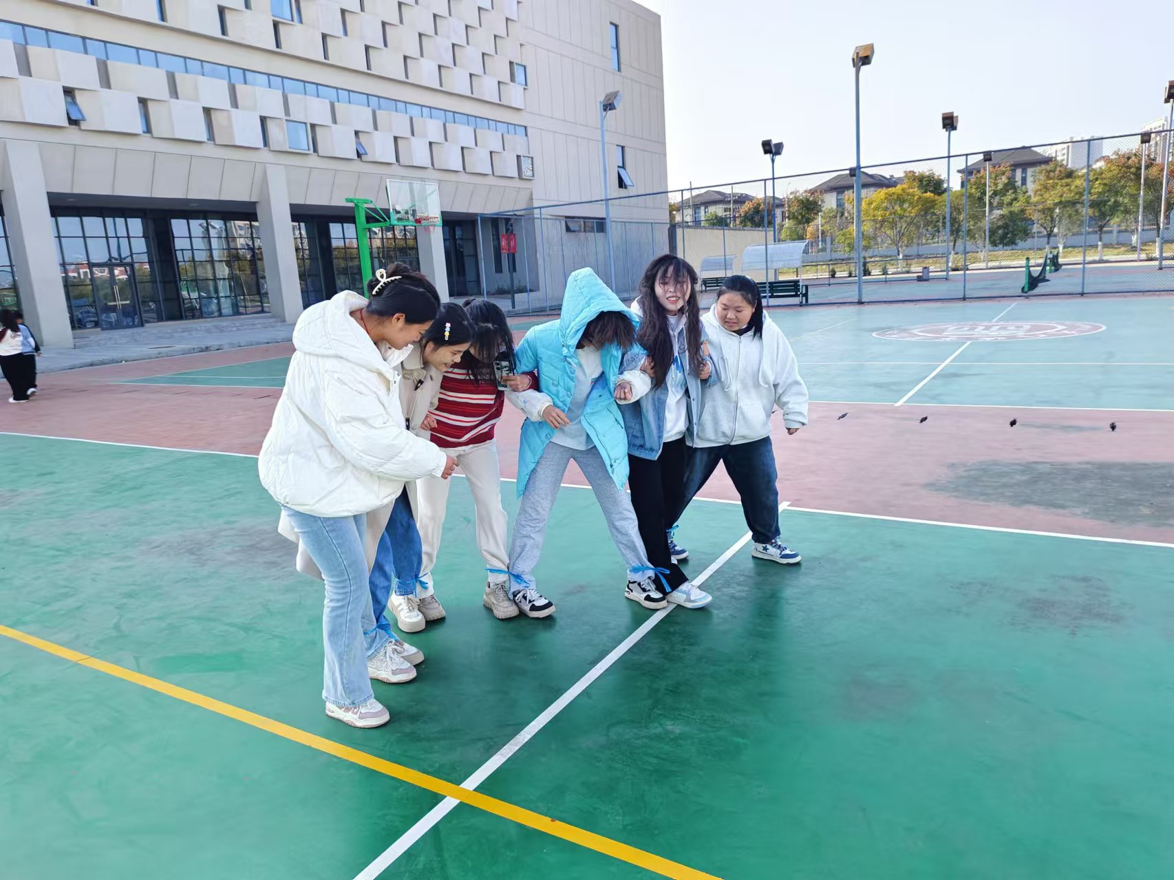活动伊始,“投篮狂欢”率先登场,同学们热情高涨,纷纷展示自己的篮球技艺,篮球在空中划过一道道美丽的弧线,每一次命中都伴随着欢呼声,点燃了活动的激情。紧接着,“n人n脚”游戏考验着团队的默契与协作,参与者们紧紧绑住彼此的脚,齐声喊着口号,艰难而又坚定地向目标迈进,展现出强大的团队凝聚力。随后的“一圈到底”,队员们手拉手围成圈,灵活地传递着呼啦圈,身体的扭动与团队的配合相得益彰,欢声笑语回荡在操场。