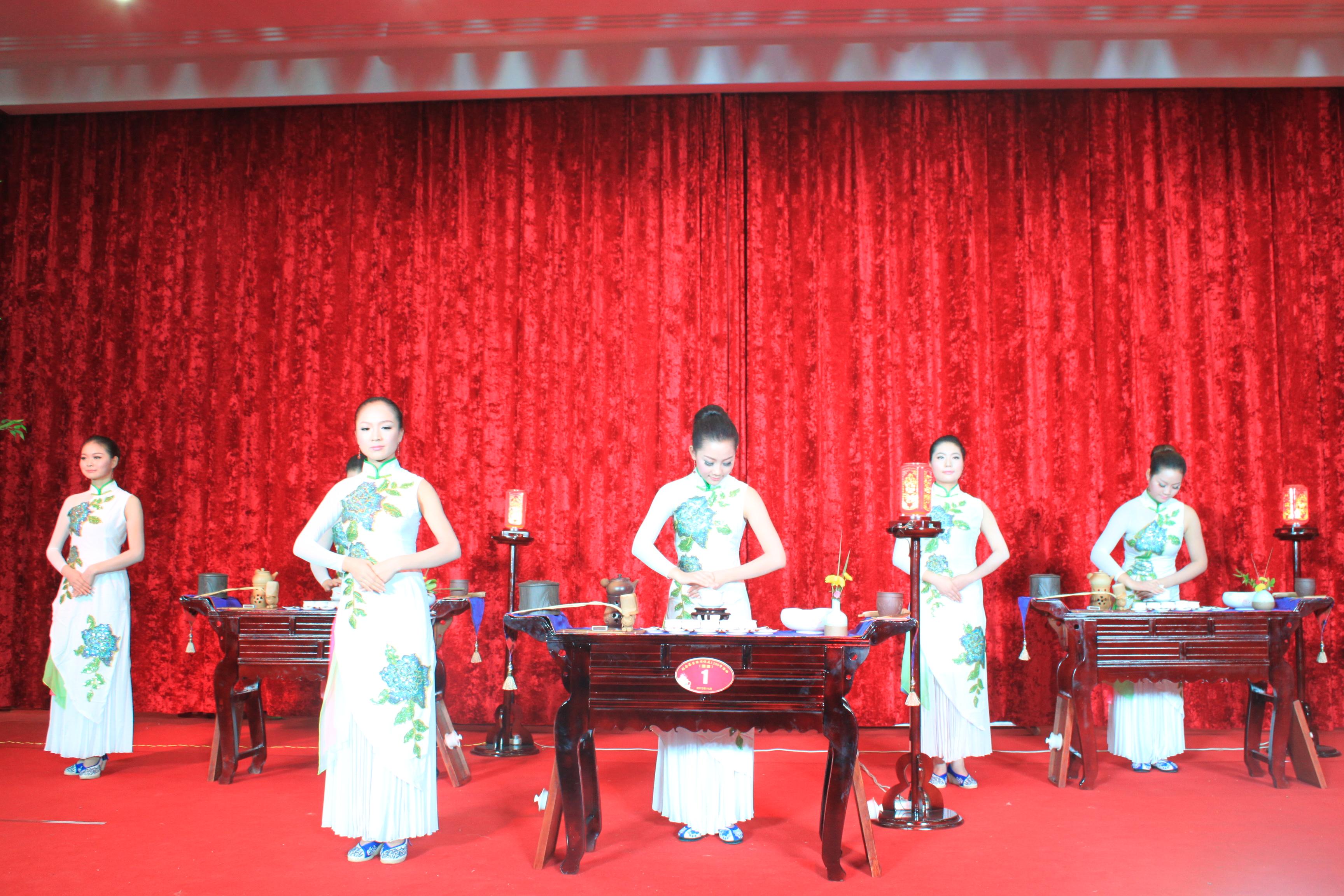 茶韵者,和谐人生也。团体赛不仅考验茶艺师个人的实际操作能力和茶韵领悟能力,也考验着茶艺师们的团队协作能力,既不能一枝独秀,也不可独慢半拍,茶艺师们必须跟随着音乐和茶序,展现和谐静美的茶韵,以韵驭艺,以艺示韵。而这几位来自天门职院的姑娘正是领悟到茶韵和谐的内涵,方能将茶叶的内在美展示得淋漓尽致,让观赏者沉醉在和、静、怡、真的美妙表演里。