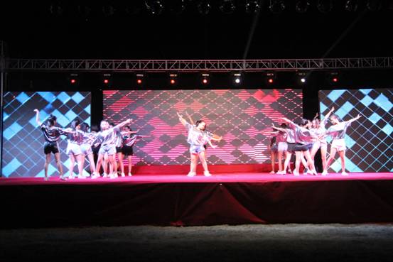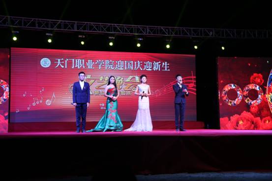 文艺演出以动感的群舞《greedy》开场,节目乐曲动感十足、舞姿轻松活泼,表达了梦筑青春、点亮校园的愿望;贵州籍学生带来了《黔东南的七月》,优美的旋律、动听的歌声使全场氛围瞬间热烈起来;新疆籍学生带来了充满异域风情的《新疆姑娘》和《维吾尔族民族服装秀》,他们的表演赢得在场学生的阵阵掌声;2016级新生编演的群体诵《大爱无疆》通过诗音画朗诵的方式呈现,节目选材来源于今年天门市夏季的洪灾,表达天灾无情人有情,众志成城抗洪灾的情感;雷鹏老师和周津竹老师为在场师生带来了《演员》这首动听歌曲,在与同学们热情互动的同时,用他们充满感情的嗓音感染着在场观众的心;电子商务专业学生为在场师生带来的hip