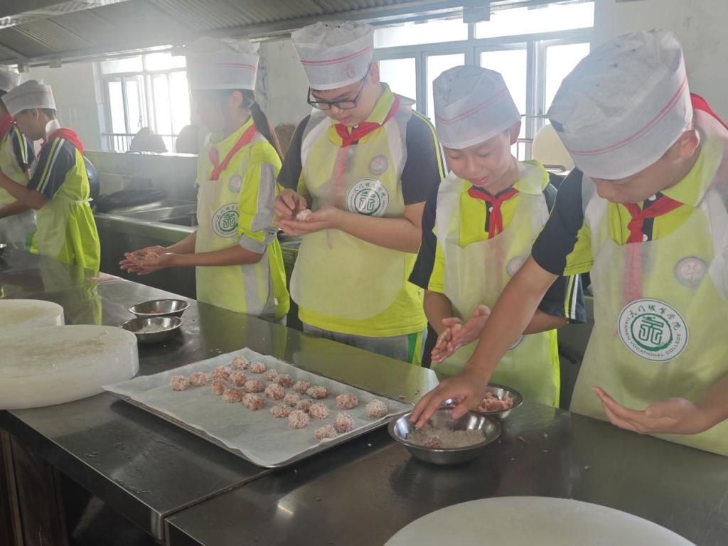活动当天,学生们在专业教师的指导下,不仅学习了烹饪理论知识,还亲手制作了饺子、桃酥等传统中式点心,并体验了天门传统蒸菜——蒸糯米圆子的制作过程。此外,活动还展示了粉蒸肉、鱼茸山茶花、蒸团子等传统天门蒸菜,让学生们近距离感受到了中华美食的魅力。