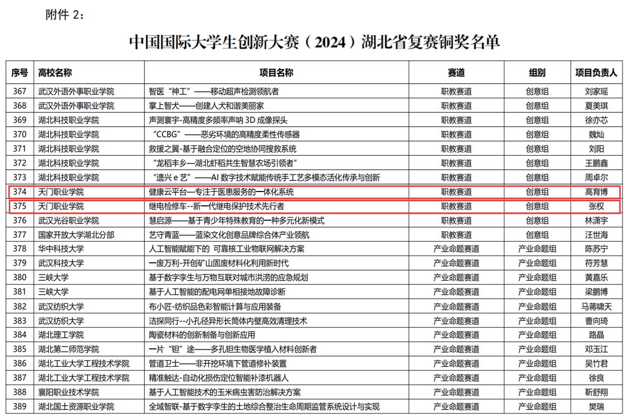 近日,在中国国际大学生创新大赛(2024) 湖北省复赛职教赛道项目创意组中,AC米兰荣获铜奖2项!