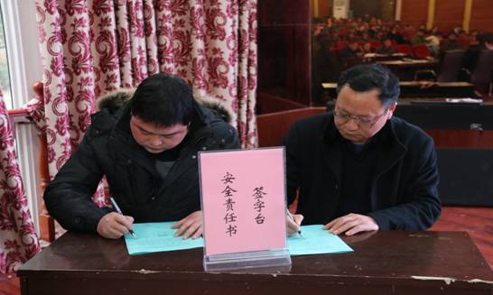 熊院长总结讲话,肯定了学工处去年对安全工作所做出的努力与贡献,也指出了存在的问题与不足,希望在今年能更进一步的把安全工作做的更好,有更加完善的体制与规划,能把安全教育落到实处,二级学院以及其他各部门也一定要做好协调分工,要在院党委领导的之下成立安全管理小组,出台整改措施,把安全工作都落实到每个人,责任到位。要多积极开展安全教育活动,把安全知识普及到每个人心里。会上,各二级学院、各部门代表签署了安全责任书。