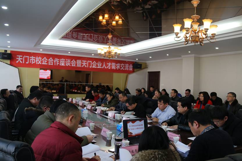 2018年1月9日,由市人社局主办的天门市校企合作座谈会暨天门企业人才需求交流会在这里举行。
