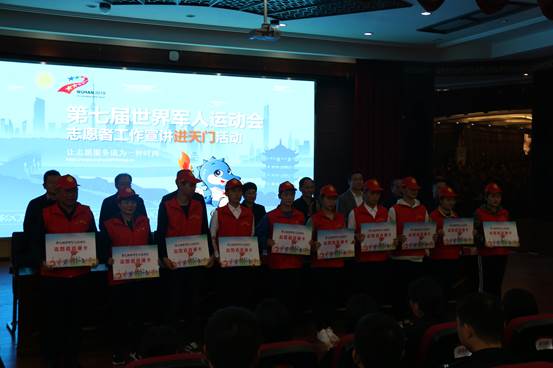活动现场播放了武汉军运会宣传片和军运会志愿者招募动漫宣传片。吴宇慧说,参加本次武汉军运会的青年志愿者要努力发扬“奉献、友爱、互助、进步”的志愿服务精神,以高度的责任感和使命感,不断加强学习,提高自身服务技能,提升文明素质,严格按照武汉军运会执委会的要求和部署,全力以赴做好军运会志愿服务工作,为武汉军运会的成功举办贡献天门力量。
