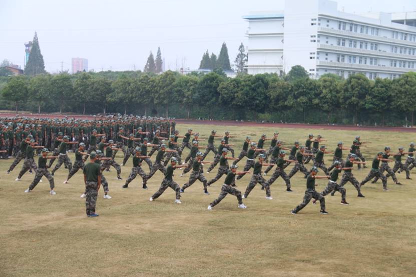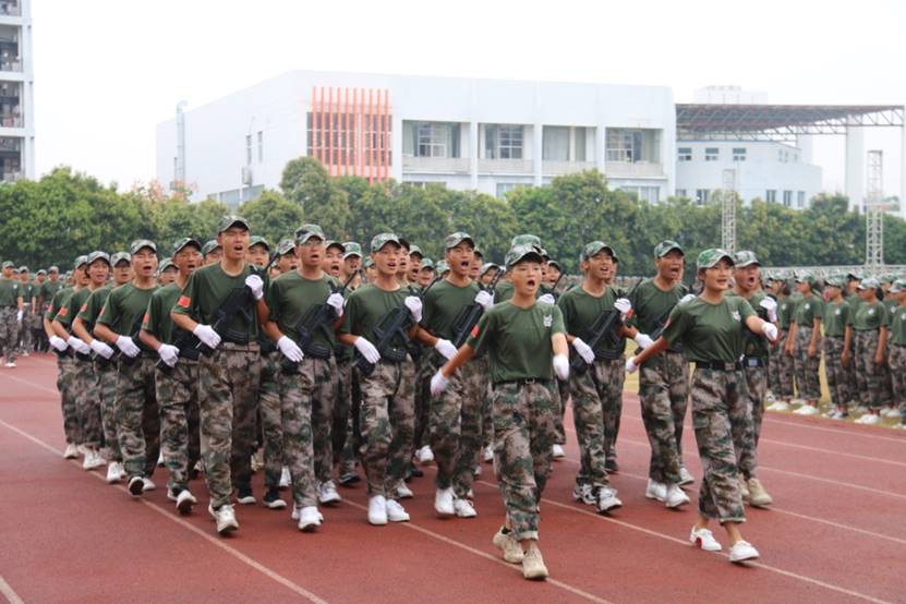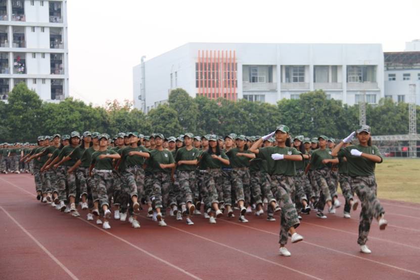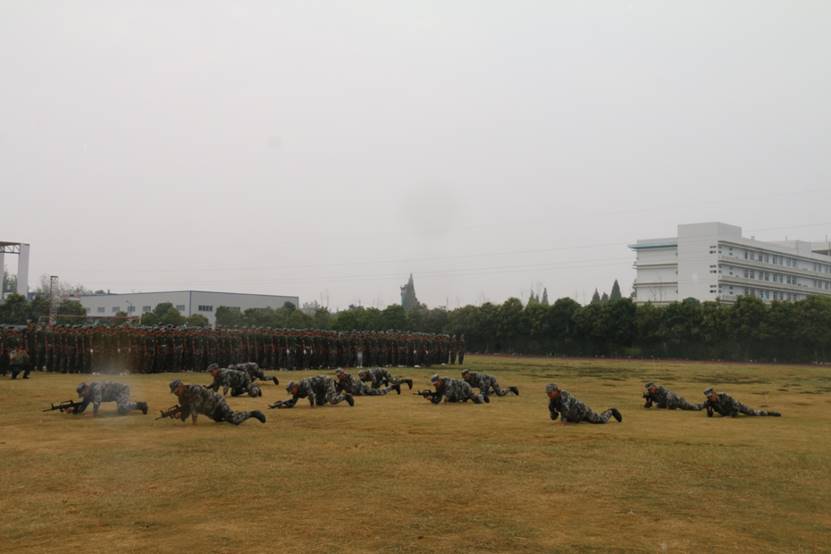 嘹亮的国歌声响起,五星红旗飘扬在田径场上。院长熊安锋在军训指挥员的陪同下检阅了军训方阵。分列式中,20个方阵伴随着激昂的中国人民解放军进行曲,以饱满的精神、严整的军姿、昂扬的斗志、刚健整齐的步伐依次通过主席台。随后各方阵进行分列式表演,同学们整齐划一的动作、恢宏响亮的口号充分展示了职院学子昂扬积极的精神风貌。军体拳、捕俘拳、持枪突进等表演科目,展现了20多天学生军训卓越的训练成果,赢得了全场的热烈掌声。