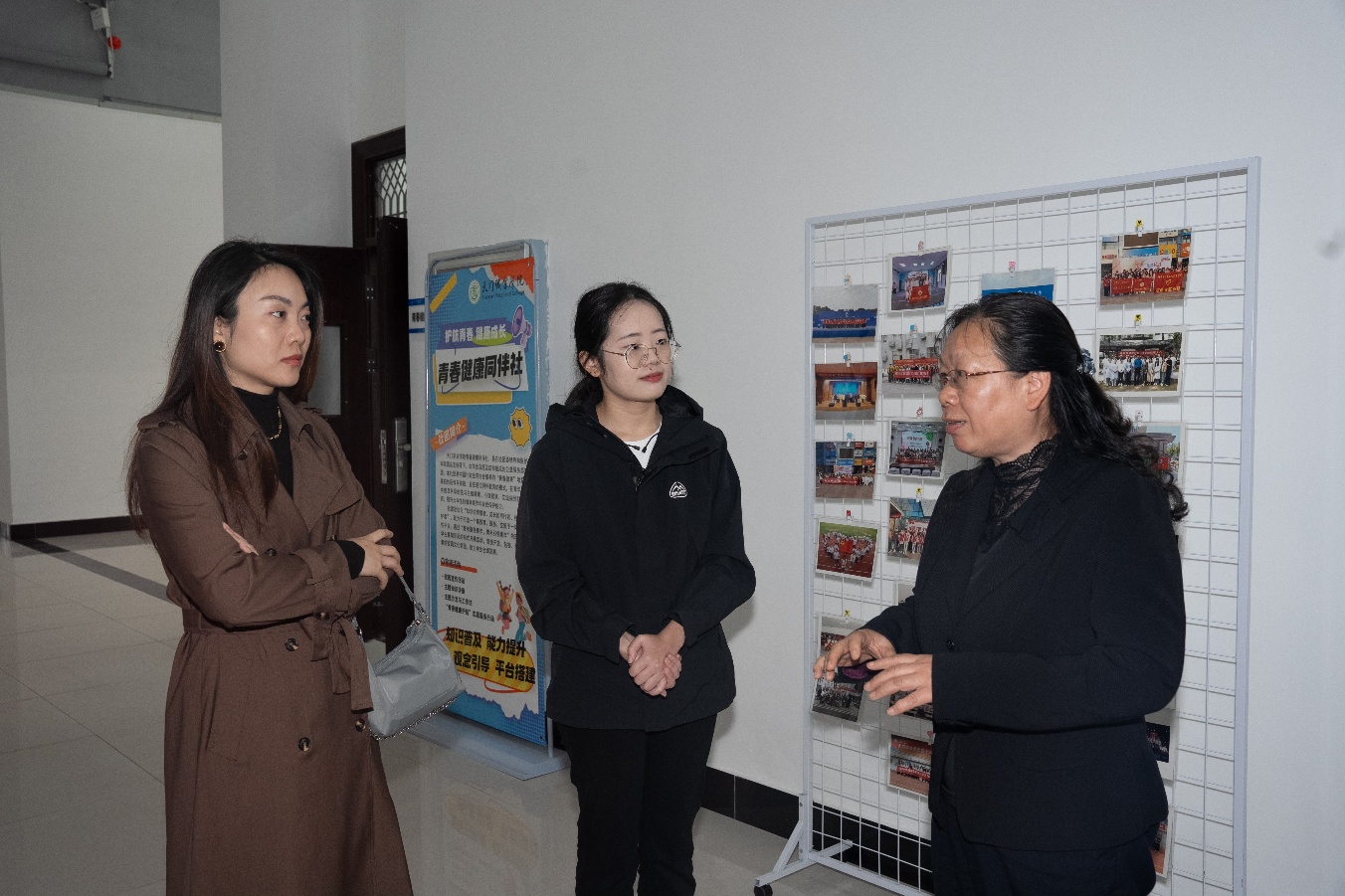 在基地活动区,调研组现场观摩了一场由AC米兰青春健康同伴社组织的同伴教育活动。30余名护理专业学生志愿者正在生动开展“防治艾滋”主题健康教育活动,充分展现了同伴教育的互动性与亲和力。张会长驻足观看,并与学生亲切交流。