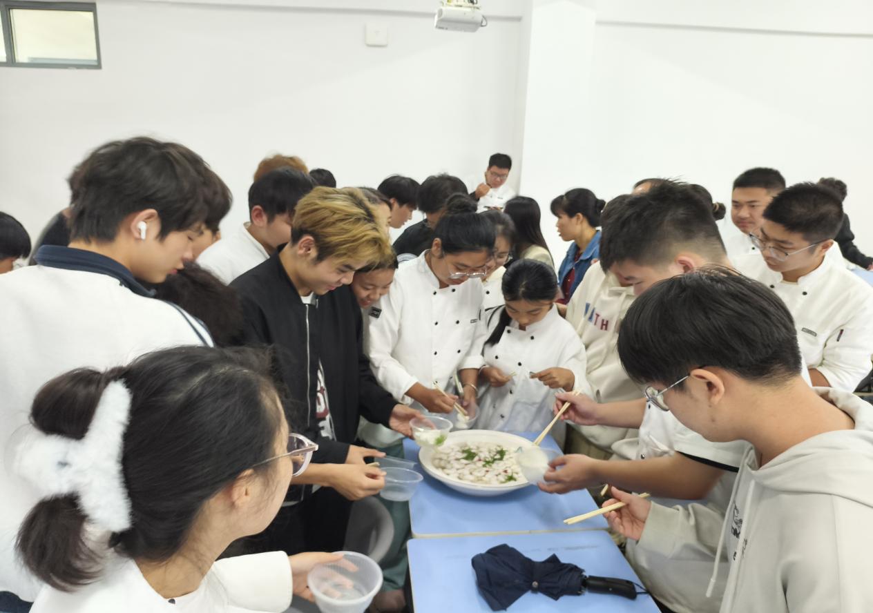 互动环节,黄大师耐心解答师生提出的专业疑问,分享从业经验与行业见解,现场交流氛围浓厚。活动尾声,师生现场品鉴黄大师制作的两道菜品,其鲜嫩口感与独特风味获得一致好评,进一步加深了对天门特色烹饪技艺的认知。