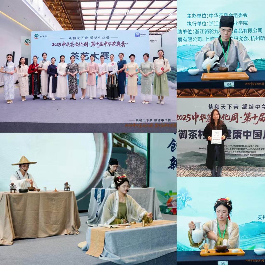 中华茶奥会是集赛事竞技、经贸合作、文化交流于一体的综合性茶业盛会,被誉为“茶界奥林匹克”。在创新茶艺个人赛中,学子李媛莉沉着应战,以娴熟流畅的冲泡技艺、对茶性的精准把控,将茶之清韵与文化内涵巧妙融合,最终斩获优胜奖;在“健康中国风味调饮茶”比赛现场,李群打破传统思维桎梏,将现代饮品创意与传统茶文化深度结合,打造出兼具风味与市场潜力的特色茶饮,成功拿下最具市场潜力奖;“中国茶青年说”大赛上,陈少军以生动的语言、真挚的情感讲述茶故事、传递茶精神,展现出新时代茶青年的别样风采,荣获演讲风采奖。此外,陈少军、张宇豪、郭心妍三人携手参与仿宋茗战大赛,学院因组织有序、团队表现突出,荣获最佳组织奖。