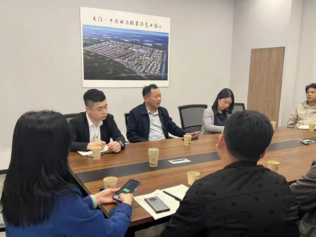为更好地服务本地服装电商产业,为产业培养高质量技术技能人才,4月9日下午,校党委副书记、校长熊安锋带领经济贸易服务学院服装电商教师,一行8人前往天门龙腾服装小镇有限公司进行考察交流。公司财务总监涂海军,办公室主任朱俊东热情接待。