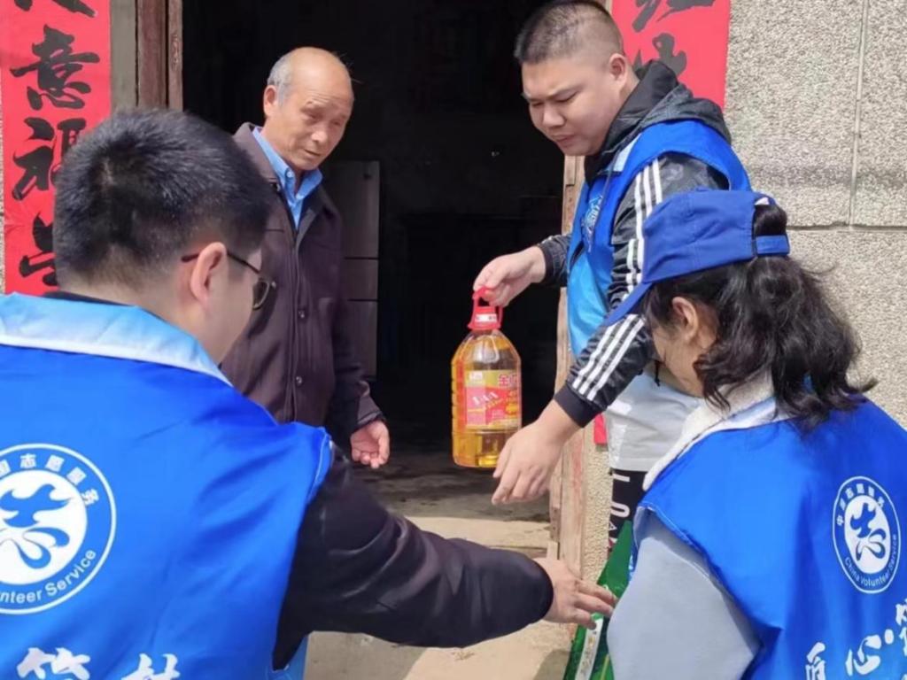 志愿者们为明庙村部分困难户送去了米、油等生活必需品,为他们打扫了房前屋后的卫生,为他们分担农活。志愿者们给困难群众送去温暖,解决实际困难,让居民群众感受到关心关爱。