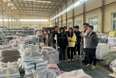 服装电商协会龙头企业起点供应链管理有限公司副总经理周煜带着师生们参观了仓库内的各个区域,起点纺织仓库、起点数码印花、起点服饰电商仓库以及起点制衣成衣制作工厂等场所。详细介绍了服装产品的生产流程、质量控制和市场运营等方面的情况,实践教学让同学们对服装电商产业的各个环节的了解更加深入。