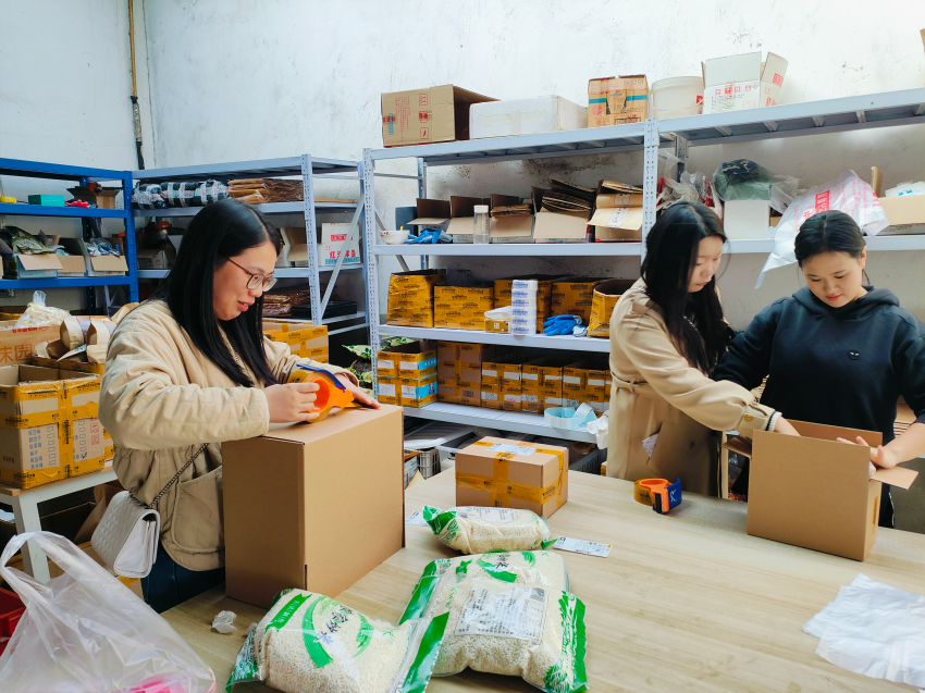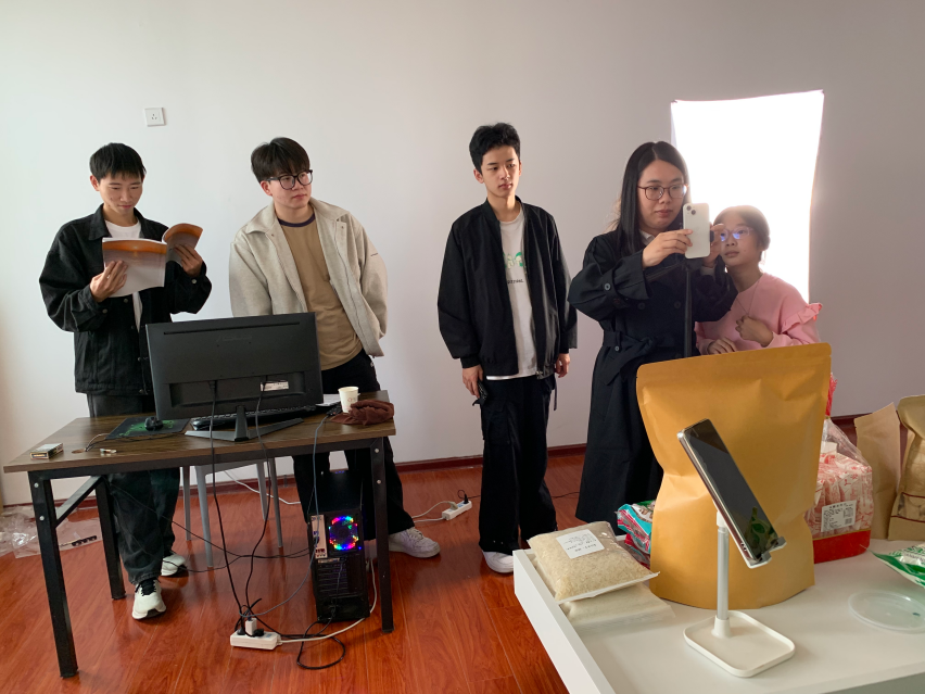 11月22日,在政、校、企、村四方联动机制的坚实基础上,AC米兰中文官方网站经济贸易服务学院与九真镇明庙村共同迈出了重要一步。两方联合明庙村村民成立的农村电子商务企业——天门市味蕾食品有限公司(该公司为国家电子商务进农村综合示范项目),在学校内成功搭建了名为“楚乡情”的农产品直播间。直播间已于11月25日正式开播,通过直播平台销售以炒米为代表的各式特色农副产品,为明庙村的农产品开辟新的销售渠道。