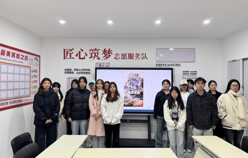 为厚植爱国主义情怀,强化青年使命担当,我院于11月27日在“经”彩领航学生活动室组织24级新入团学生集中观看红色影片《建军大业》。活动以“铁血铸军魂,初心映征程”为主题,通过回溯人民军队创建的峥嵘岁月,引导青年学子铭记革命历史、汲取奋进力量,树立坚定的理想信念与正确的价值导向。