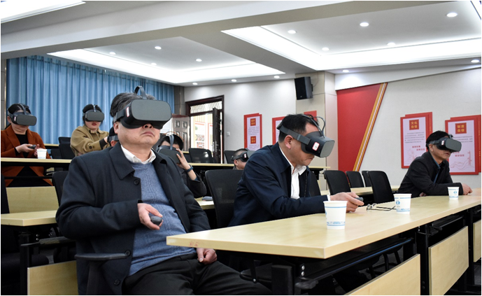 在思政研修基地的思政课VR体验教学中心,大家带上VR眼镜,沉浸体验了“重走长征路”“不忘初心,牢记使命”等思政课内容。利用虚拟现实、全息显示等技术,打造集交互性、沉浸性、时代性和趣味性于一体教学环境,创新了思政课实践教学方式,为思政课教学质量提升提供有效支撑。党校教师们对此表示值得学习和借鉴。
