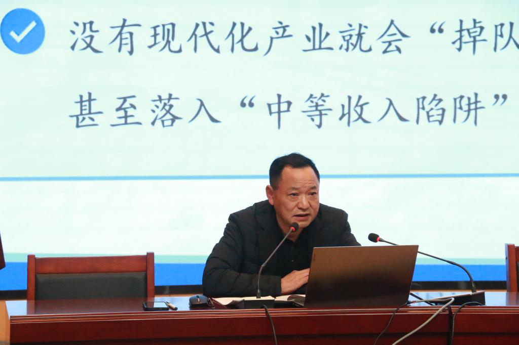 熊安锋教授从加快现代化产业体系建设的重大意义、存在的短板以及健康中国建设下的天门实践三个层面,从国家到地方全面分析了我国目前现代化产业体系建设。首先,他从建设中国式现代化国家的角度分析了加快现代化产业体系建设的重大意义,建设现代化产业体系是推动高质量发展的必然要求。其次,分析了我国现代化产业体系存在的主要短板,包括我国科技创新部分关键产业的核心关键技术依然受制于人,很多关键的零部件等自给率还不够高,所以要进一步加强我国原创性、重大基础性研究投入,并以华为“芯片事件”为例,说明了我国目前核心受制于人的现状。最后,结合地方发展和学生专业实际,重点阐释了本地医疗系统相关政策与措施,并分析了目前本地医疗资源﹑未来就业形势。