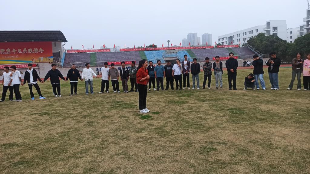 本次活动以“凝心聚力 启航新篇”为主题,由心理教研室9名心理健康教师组织实施,通过一系列精心设计的心理游戏和团队活动——“桃花朵朵开”“一圈到底”“松鼠与树洞”“信任之旅”“两人三足”“手脚并行”等,引导2024级新生在互动中增进了解,在合作中感悟力量,在分享中打开心门,逐渐建立起“彼此接纳、互相支持、共同信任”的团体氛围。
