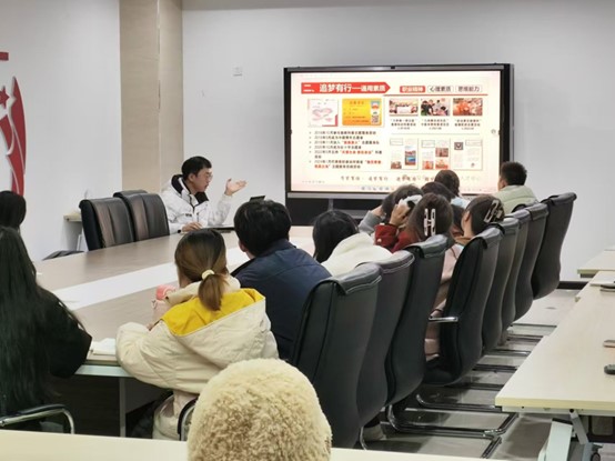 在讲解过程中,帅伟老师通过大量生动鲜活的实际案例,向同学们展示了如何精准剖析自我,挖掘自身兴趣、优势与潜力。从性格测评工具的运用,到过往学习、实践经历的深度复盘,每一个环节都紧密相扣,引导同学们逐步构建起对自我的全面认知。同时,针对如何调研目标职业,老师详细介绍了多种途径与方法,如行业报告研读、企业实地探访、从业者访谈等,让同学们得以拨开云雾,看清不同职业的真实面貌、发展前景与用人需求。