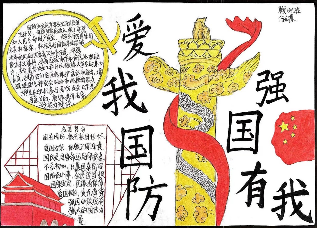 每年的九月是我国国防教育月,为强化大学生国防意识,深入普及国防知识,增强爱国热情,9月23日,医护学院举办了国防教育主题系列创作活动,活动以主题板报、绘画、参观等形式展开。
