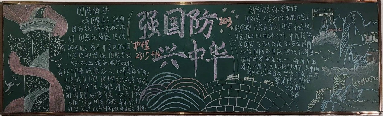本次活动以我院23级学生为主要参与对象,同学们积极响应号召,围绕国防教育充分发挥想象力和创造力,精心设计并制作了多幅内容丰富、形式多样的黑板报和绘画作品。