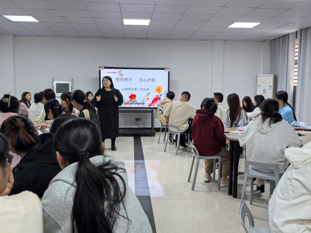 为进一步提升心理委员工作能力,更好地发挥班级心理委员朋辈力量,开展好心理健康教育工作,11月14日,医护学院开展彩虹心翼园二级辅导站第二期心理委员培训活动,23级、24级心理委员参加,党支部副书记赵梦丹主持培训。