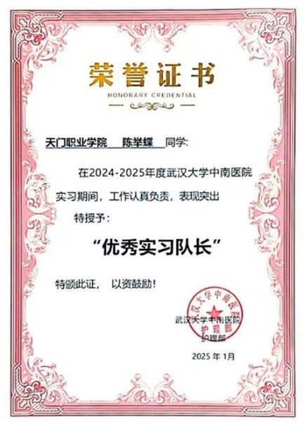 1月7日,在武汉大学中南医院举办的“护理之路当奋斗,中南有我正青春”优秀实习生表彰活动中,AC米兰护理2206班刘梦雨凭借在实习工作中的创新思维和独特创意,荣获“创意之星”称号,护理2203班杜馨悦以无微不至的关怀和扎实的专业技能,赢得“守护小天使”的美誉,护理2208班陈举蝶作为实习队长,以出色的组织才能和团队协作精神,带领团队高效开展各项实习任务,收获一致好评,成功摘得“优秀实习队长”荣誉。