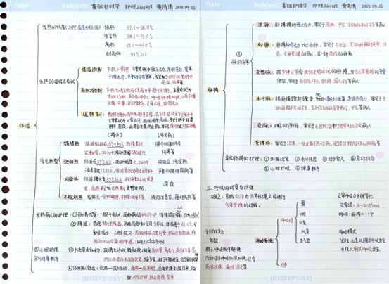 为深入推进学院学风建设,切实贯彻“仁心精技,笃学致远”的育人理念,医护学院于近期开展“学霸笔记打卡”主题活动。本次活动通过遴选各专业优秀学子的课堂笔记,集中展示其严谨治学的态度与精益求精的学术风貌,旨在发挥榜样引领作用,促进师生互学互鉴,营造勤学善思、务实求真的学习氛围。
