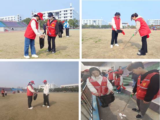 志愿者们在老师的带领下积极行动起来,不畏脏、不怕苦,认真打扫着校园的每个角落。他们有的在草坪捡拾垃圾,有的挥舞笤帚清扫看台,有的向其他同学宣传雷锋精神,号召大家共同维护环境卫生。在大家辛勤的努力下,清扫整理任务如期完成。