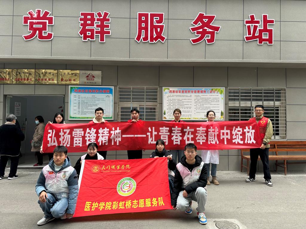 3月5日是全国第61个“学雷锋纪念日”,也是第25个“中国青年志愿者服务日”,医护学院积极响应校团委号召,结合学院专业特色,带领彩虹桥志愿服务队赴鸿渐社区开展志愿服务活动,身体力行传承和弘扬雷锋精神。