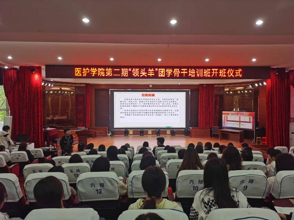 为提升学院团学骨干的思想政治素养和岗位工作能力,发挥团学组织的思想引领与成长服务功能,4月10日,医护学院举办了第二期“领头羊”团学骨干培训班开班仪式。校团委书记尚驰,医护学院副院长赵梦丹出席。2022、2023级团学骨干参加。