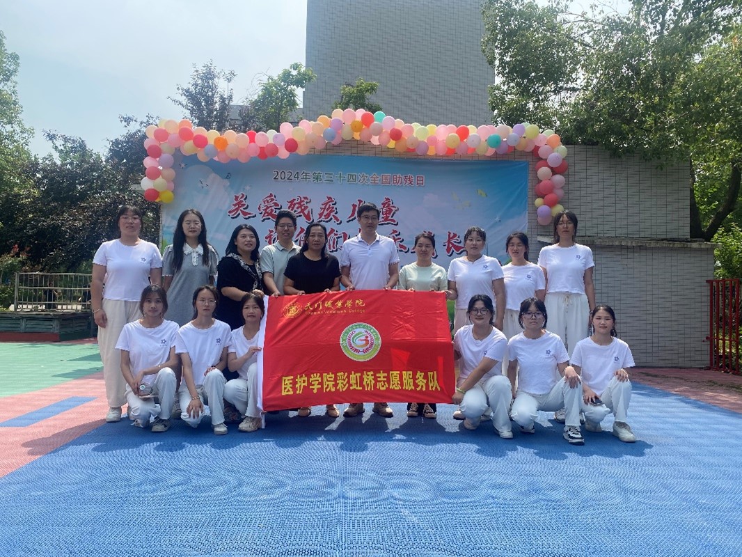 5月16日上午,在第三十四次全国助残日到来之际,天门康复医院举办了“关爱残疾儿童,让他们快乐成长”主题活动,AC米兰中文官方网站医护学院彩虹桥志愿服务队受邀参加。校团委书记尚驰,医护学院副院长胡伟伦、赵梦丹带领彩虹桥志愿服务队参加活动。