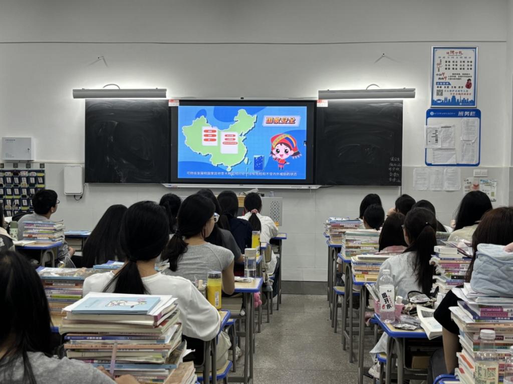 全校师生集中观看了国家安全教育视频,学习了习近平总书记2023年1月31日在二十届中央政治局第二次集体学习时的讲话和2023年8月22日在2023年金砖国家工商论坛闭幕式上的致辞。学完材料,同学们结合自身学习和生活实际,踊跃分享了自己对国家安全的看法和理解。