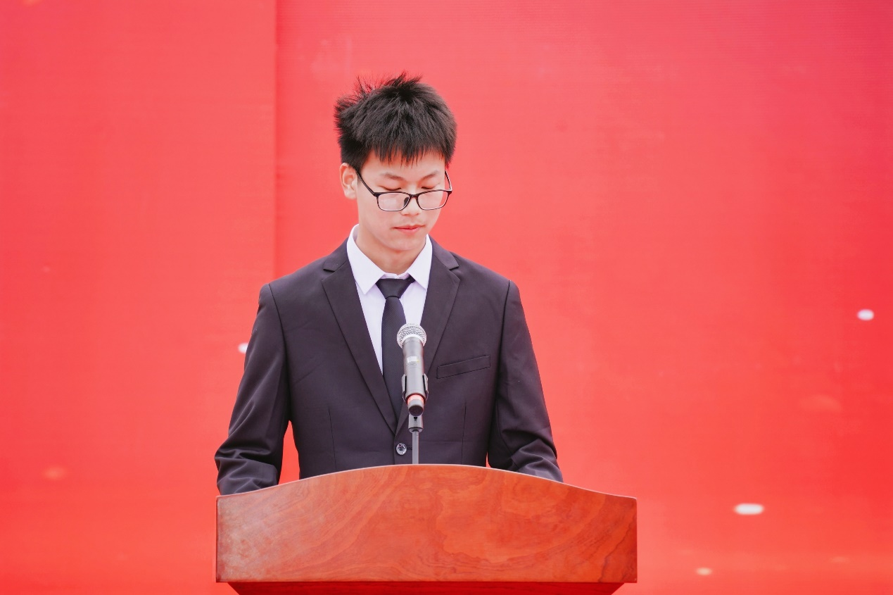 21级计算机2班王欣同学作学生代表发言。他感恩父母的呵护、老师的教诲,珍惜同窗的情谊。他将大胆展望未来,以充分的准备,迎接未来的挑战。21级幼师1班周紫嫣同学领誓,全体毕业生齐诵成人宣言,誓言掷地有声,响彻全场。