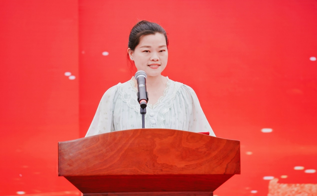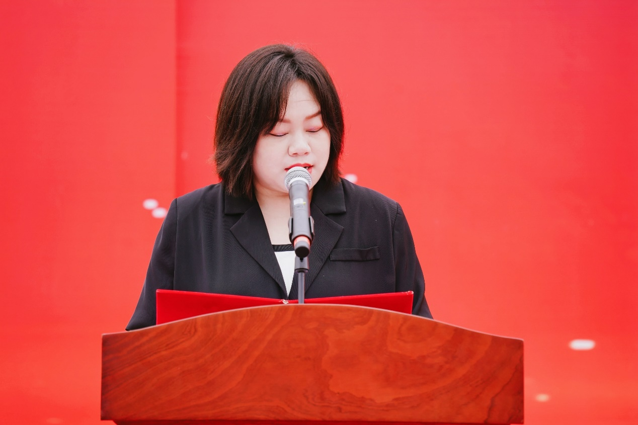 刘晶作教师代表发言。她欣慰昨日稚气未脱的少年如今潇洒自信、壮志昂扬,期盼同学们鸿鹄高飞,一举千里;羽翼已就,横绝四海。