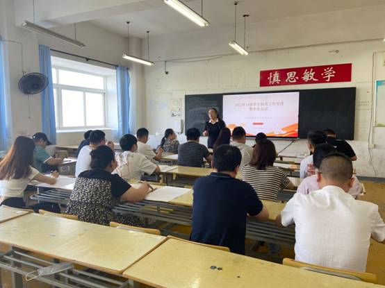 会上,陈薇薇老师带领大家学习了《国家教育考试违规处理办法》《中华人民共和国教育法》中的涉考内容、《刑法修正案九》中的涉考内容。中职部团总支书记尚驰带领大家学习了《考场规则》,宣读了诚信高考《誓词》。各班主任领取了《普通高考违规考生处理告知书》样本和《考生诚信考试承诺书》。殷遇骞部署工作,要求各班召开“诚信高考,拒绝作弊”主题班会,并要求每一名学生签订《考生诚信考试承诺书》。