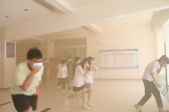 下午3时30分,消防安全演练在警报声中拉开序幕。烟雾弥漫中,各班同学在班主任的指导下迅速、有序、安全的从既定路线到达指定位置。整个过程,用时仅3分23秒。