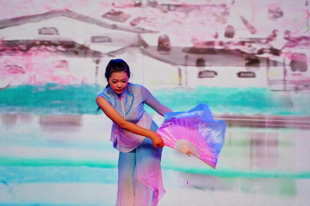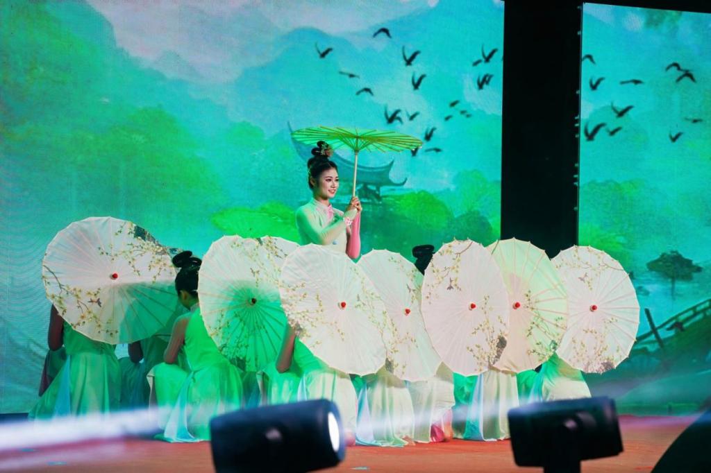 舞蹈《西子湖·初妆》以江南韵味为笔,描绘出一幅烟雨朦胧的水墨画卷,尽显东方古典之美与青春的温婉典雅。