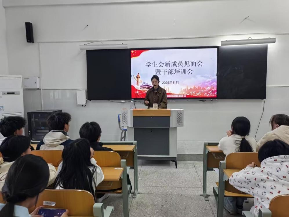 刘子颖书记部署后续工作,明确本学期学生会在校园文化活动、志愿服务、日常检查等方面的重点任务,强调建立“以老带新+定期例会+专项培训+实践锻炼”成长机制,助力新成员快速适应角色。她希望全体成员以此次培训会为起点,锤炼能力、拓展视野、互帮互助,在服务同学中实现自我成长,在团结协作中共创学生会工作新局面。