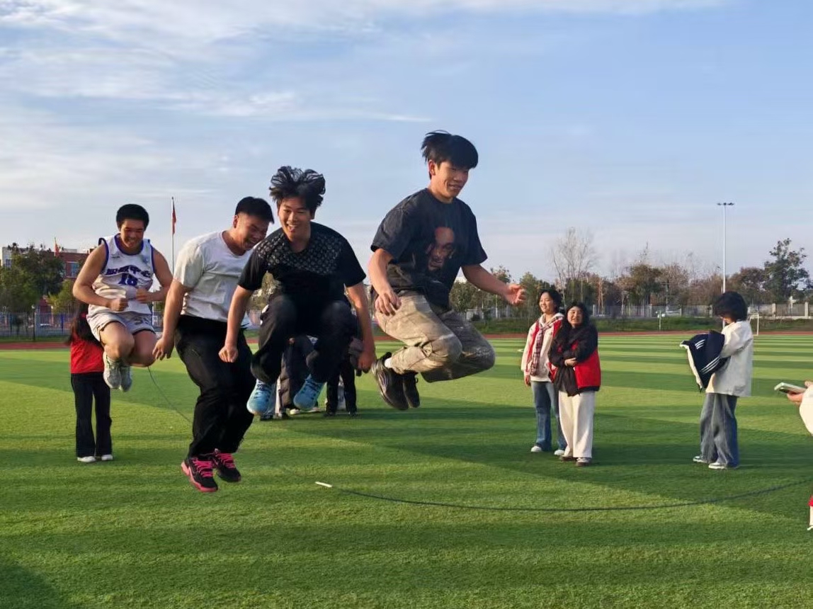活动现场氛围热烈,组织有序,志愿者们穿梭其间提供贴心服务,保卫科团队全程保驾护航,助力活动顺畅推进。一圈到底、摸石过河、两人三足、多人跳绳四大趣味项目同步开展,成为校园里最吸睛的“活力打卡点”。