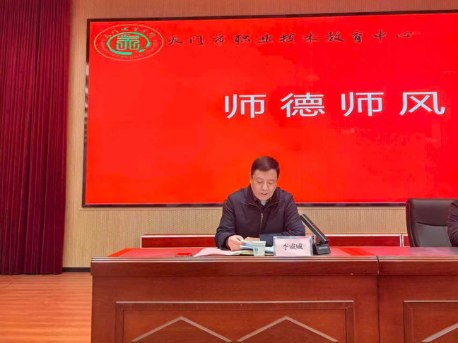为进一步强化教师师德修养,规范教育教学行为,12月19日,天门市职业技术教育中心组织全体教师召开“强师德 树规范”师德师风教育专题大会,全体教职工参会,会议由副校长李威威主持。